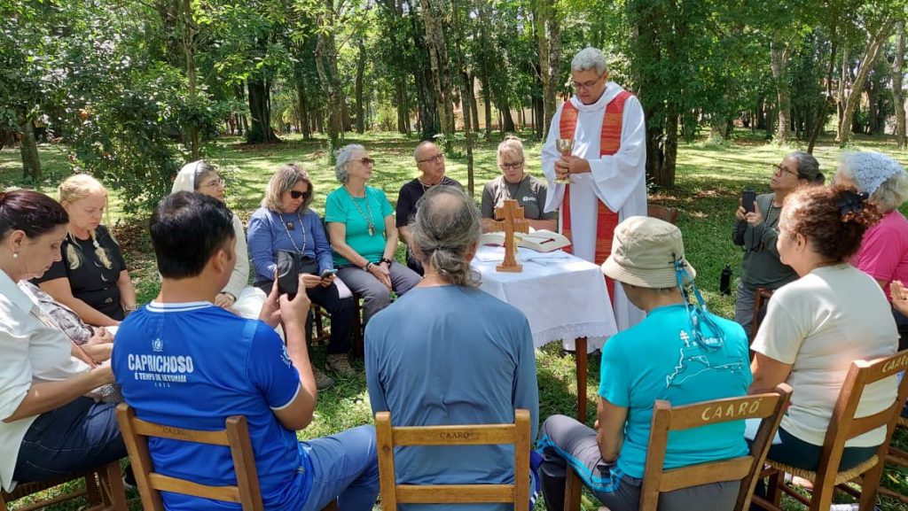No sábado, 15 de novembro, a Rede Servir participou de um momento especial de oração, meditação e celebração eucarística durante a Peregrinação Jubilar ao Santuário do Caaró, em Caibaté, no Rio Grande do Sul. A atividade foi conduzida pelo Pe. Laércio de Lima, SJ, secretário para Colaboração, Fé e Espiritualidade da Província dos Jesuítas do Brasil, em um espaço cercado pela natureza, que favoreceu o silêncio, a interioridade e a contemplação.